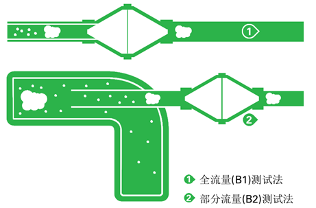部分流量(B2)測試法:只測定中心氣流。也就是說,只有霧態油能夠被檢測到,而沿著管壁的液態油無法被檢測到。